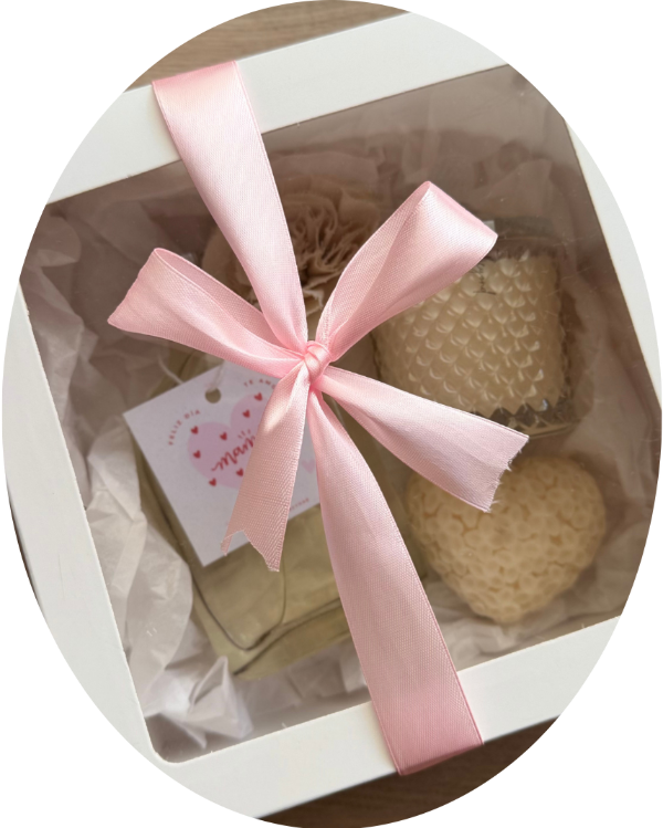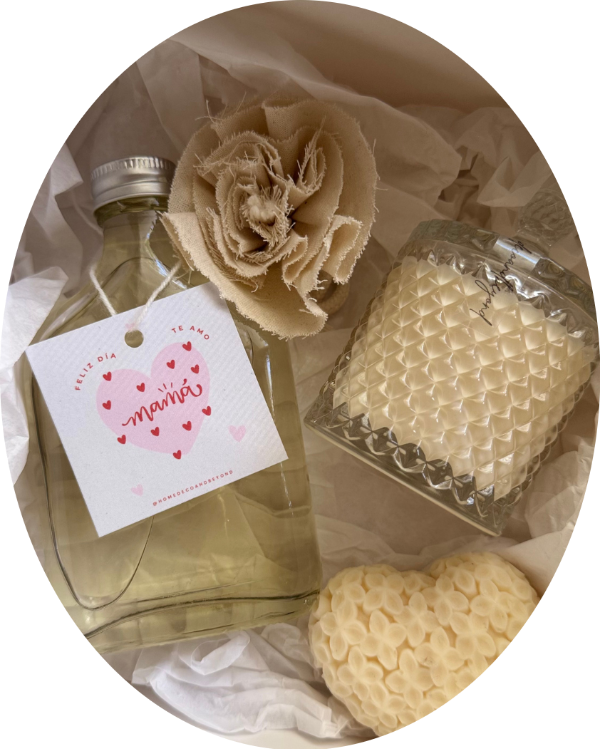 Box 1 : difusor con flor difusora + vela caramelera + vela o jabón de corazón.